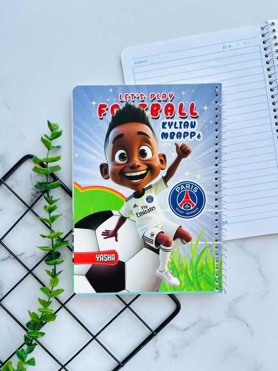 با خط آبی و طراحیهای فانتزی فوتبالی، مناسب برای مدرسه، یادداشت و لحظات پرانرژی!