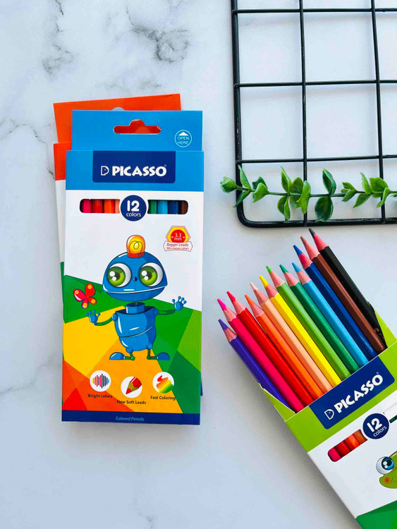 مداد رنگی ۱۲ رنگ پیکاسو | رنگهای زنده، نوک نرم، طراحی فانتزی**