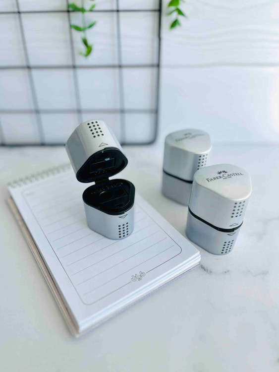 این مدل تراش فابرکاستل، با 3 سوراخ مختلف برای انواع مدادها، دو مخزن پلاستیکی، بدنه پلاستیکی محکم، تیغه فلزی استیل و رنگ زیبای نقرهای، یک محصول 3 در 1 بی نظیر است که با